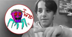 Legislator Eric Stewart (Towns of Hurley and Marbletown, District 18) states, “I am excited to present the Pride of Ulster Award to 14-year-old Hudson Rowan of Stone Ridge for his quirky and maniacal winning entry in the Ulster County Board of Elections’ 2nd Annual “I Voted” sticker contest. Legislator Stewart adds, “Hudson’s off-the-wall, multi-colored, grinning head on spidery legs design won the contest hands-down and went viral internationally, giving Hudson, his parents, Marbletown, and Ulster County widespread notoriety and acclaim. I can’t help but wonder what we should next expect from this extraordinary artist and budding graphic designer.”